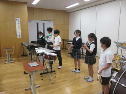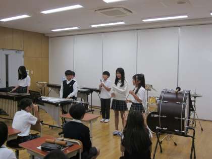 グループで取り組んだ打楽器のリズムアンサンブル。