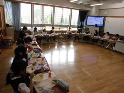 円になって食べると友だちの顔を見て食べることができますね。