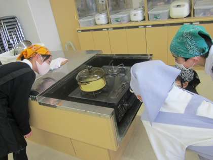 火加減に気を付けながら、中のお米が見える透明の鍋で、