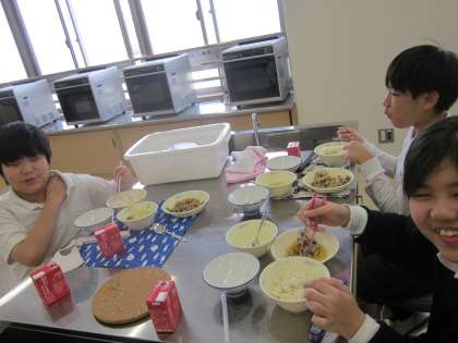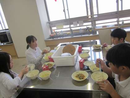 給食時間に給食と一緒に食べました。