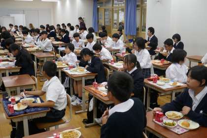 総括考査が終わった後は、昼食タイムです。多目的ルームでの準備は、いつもと勝手が違いましたが、当番の人を中心によく動いてくれました。しっかり食べて、しっかり勉強して、しっかり寝て、残りのテストに備えていきましょう。