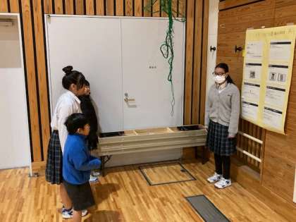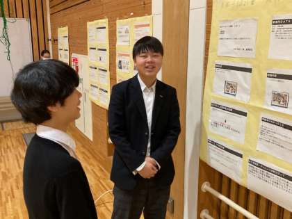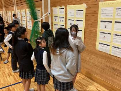 8年生は2年生の子と一緒にポスターセッションの発表を見に行っています!