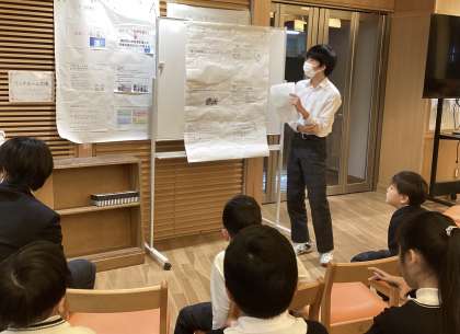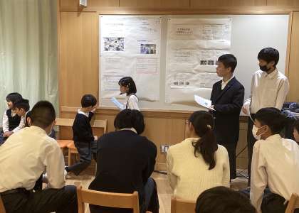 会場のランチルームは満員御礼!1組生徒たちの学びを発信する、とても良い機会になりました。「ポスターセッション」が初めての1年生もがんばりました!お家でもぜひ話を聞いてみてください。