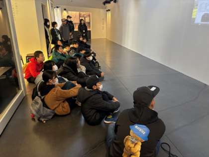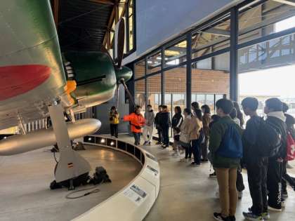 特攻の戦闘機は、戻って来ないと聞いて驚く生徒たち。歴史のビデオも真剣な眼差しで見ています。