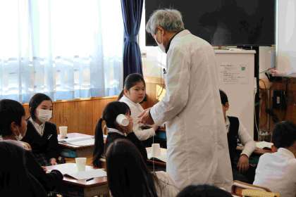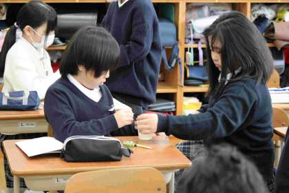 今日の理科の実験では、紙コップと糸を使って、糸電話を作りました。