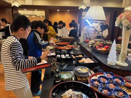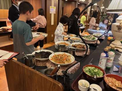 6年生はこのあと広い宴会場でレクリエーションが行われます。
