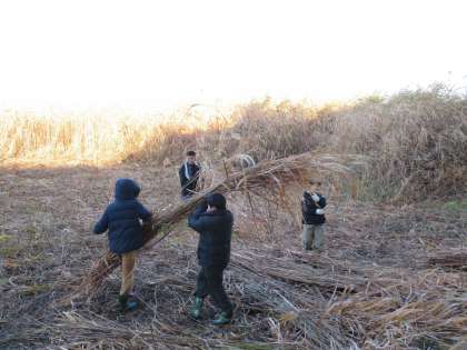 とんどに向けての葦刈り