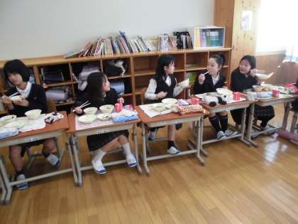 給食は円になって食べました。お互いの顔を見るのは少し久しぶりな気がしましたね。