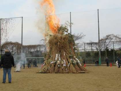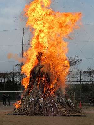 一気に炎が上がり、今年1年の無病息災、五穀豊穣を願いました。豚汁やぜんざい、野菜販売などもあり、お世話になった皆様、本当にありがとうございました。