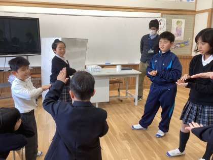 みんなで目には見えない「かえる」を手で優しくもって回していくゲームをしています。目には見えないかえるさんだから、友だちの名前をよんで言葉で伝えます。かえるさんは無事にみんなの手のひらを回ったのでしょうか…。