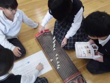 「さくらさくら」の箏の楽譜を友だちが隣で読み上げてくれています。