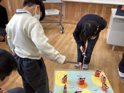 給食の牛乳パックで作った魚は100g、200g、250g、300g…などいろいろな重さのものがいます!合計が1kgをめざしてつりあげます!
