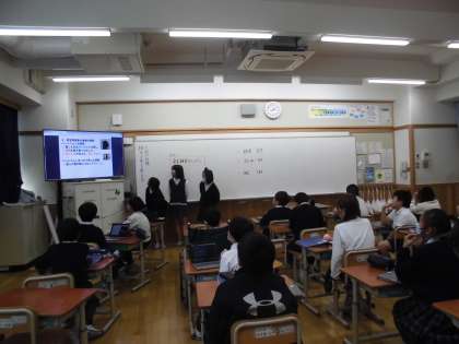 友だちの発表を見て、聴いて、気づいたことを出し合っています。