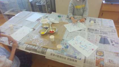 指や手を使った絵の具で、楽しみながら取り組めました!