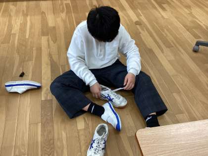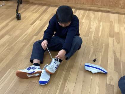 実際に自分の靴紐で練習しています。