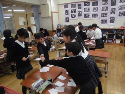 友だちと作ったかるたで遊びました。