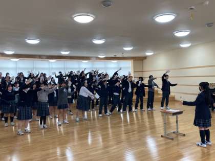 プレゼンテーションホールにて、9年生を送る会の練習を行いました!みんな楽しそうに、そして9年生のために全力で頑張っています!