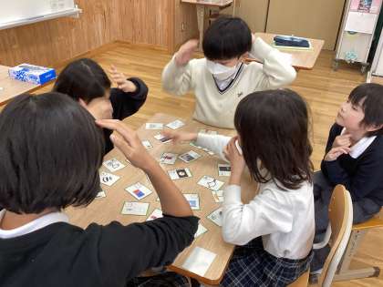 今日はみんなでつくったカルタで遊びました。