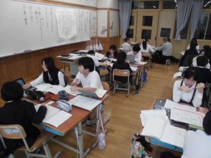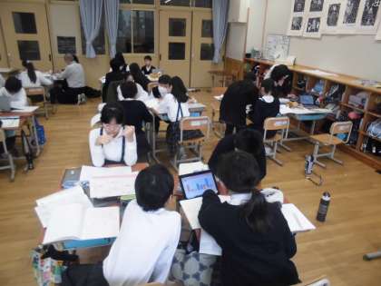 班で協力しながら原稿を完成させています。