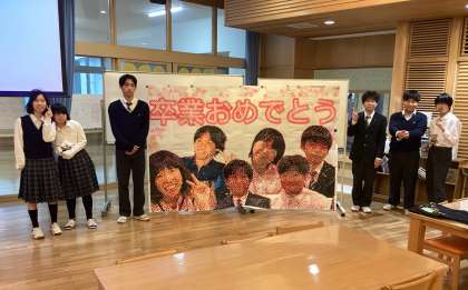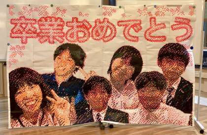 1組みんなで取り組んできた9年生卒業お祝いモザイクアートが完成しました!