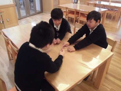 ランチルームにおいてある食に関するカードゲームや絵本を見て楽しんでいました。