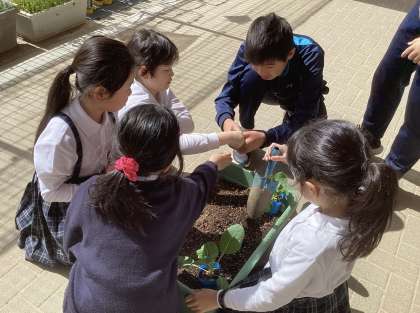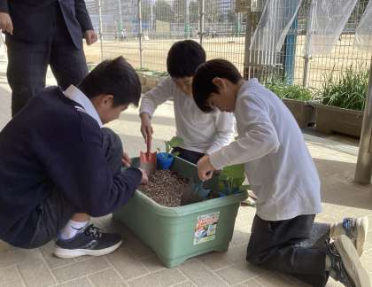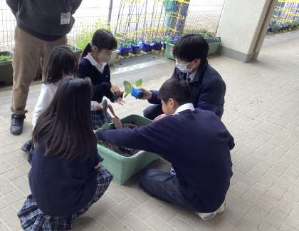 2年生がキャベツの苗を植えるということで、畑班の生徒がお手伝いをしました。