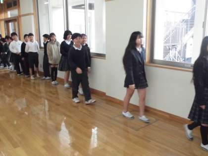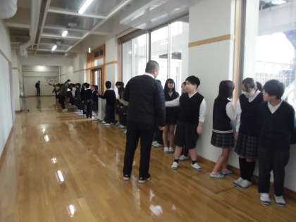 7日に行われた「4年生ありがとうの会」が始まる前の体育館前の様子です。
