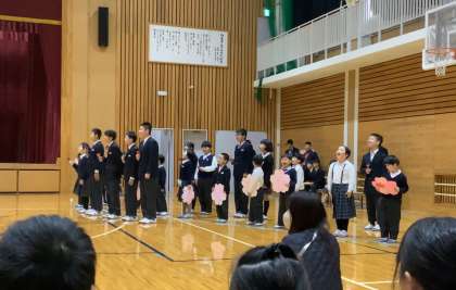 1組はミュージックベルで「ありがとう」を演奏しました。