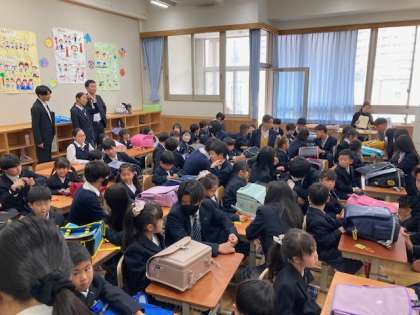 明日の新入生をむかえる会に向けて、新入生と9年生との初顔合わせが行われました。とても和やかで優しい空間と時間が流れました。9年生が優しく話しかけている姿は何度見ても素晴らしかったです。