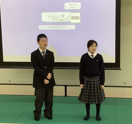 先生の紹介や授業のグループが発表され、来週から始まる授業にドキドキわくわくな子どもたちです!上級生が司会進行をしてくれました。