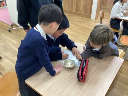 今日は、これから畑に植えるタネで「これはなんのタネでしょう」クイズをしました。