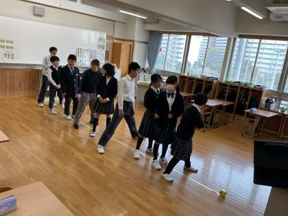 友だちとコミュニケーションをとりながら難問をクリアしていくゲームをしました。
