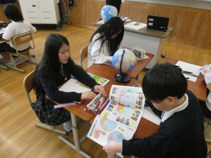 今日は地球儀を見ながら楽しんで大陸について考えていました。