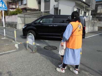 子どもたちが登校する時間は、大人も出勤時間であることが多く、通学路の細い道からもたくさんの車が走ってきます。今日もそんな所に立ってくださっていました。