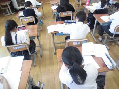 単元の確認をしています。わからないところはテスト前に確認してできるようにしておきましょう。みんなで答え合わせと解説(説明)までできました。