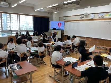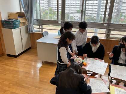 チームステージでのはじめてのピア活動がありました。来週に行く大阪関西万博に向けてグループでどのパビリオンに行くかなどを相談しています。7年生リーダーのもとで楽しく活動することができました。