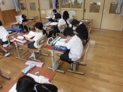 けんばんハーモニカは息の量をうまく調節して音量を変えて表現します。