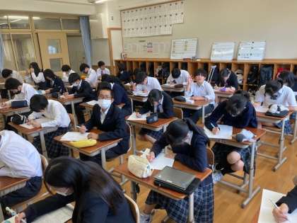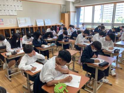 自転車の危険性について学び、安全に交通ルールを守れるようにしっかりと考えています!素晴らしい姿勢!さすが8年生!