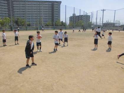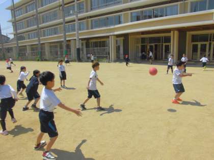 ドッジボールに楽しそうに取り組んでいます。