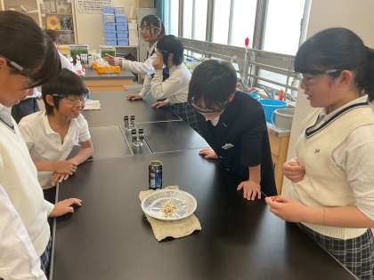 グループで試行錯誤しながら実験に取り組んでいます。