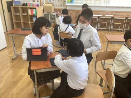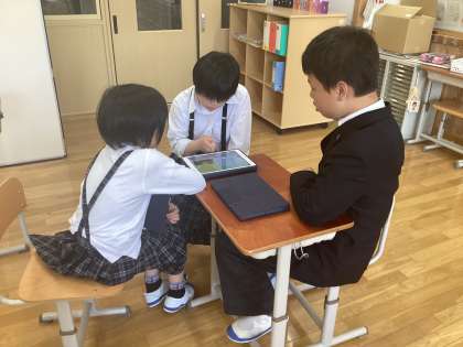 フィールドワークでわかったことを観察シートにまとめてグループで交流しました。