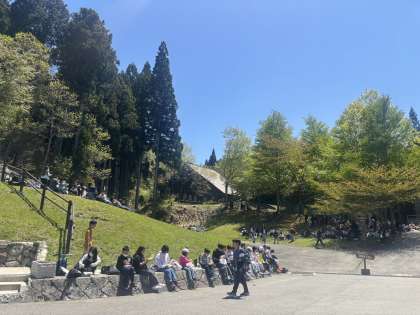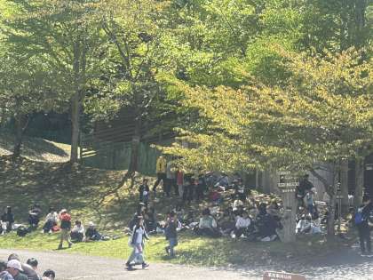 昼食もグループごとに分かれて食べます。とても良い天気で外で食べるお弁当はとても気持ちがいいですね!ご準備ありがとうございました。
