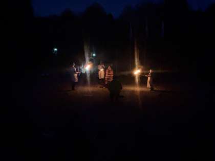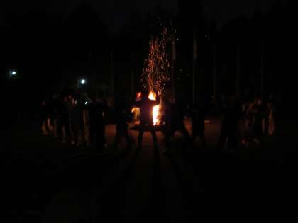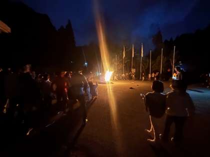 火の神と火の子,そして池の神がリーダーの炎を灯しキャンプファイヤーが始まりました。