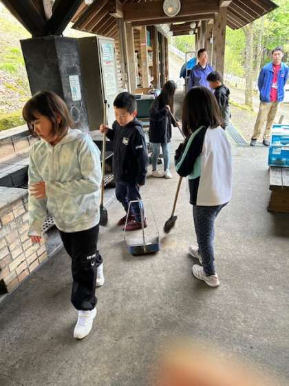 リーダー最終試験の前に、少し空いた時間で自主的に掃除を始める4年生です。