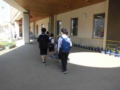 途中でこけてしまった1年生を、まるでボディガードのように上級生たちが全方位を囲みがら登校してきました。優しいお兄さんたちのおかげで、安心して登校できたことでしょう。心洗われるワンシーンでした。