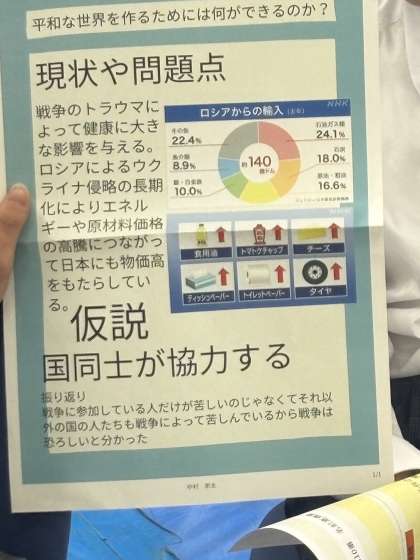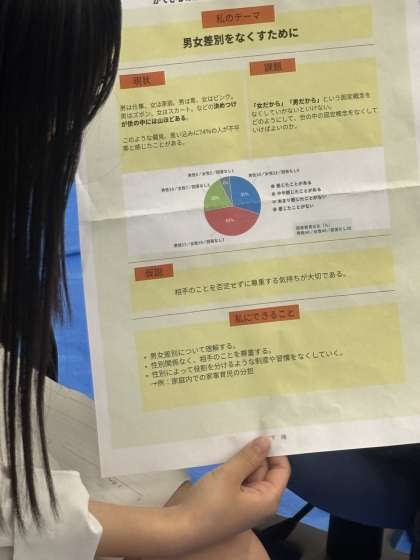 平和学習だけにとどまらず、人権学習などで自分が探求した内容を大学生にプレゼンをしています。大学生からアドバイスや感想を頂戴し、さらに探求を深めていきます。