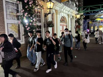 朝からスポレクをして、昼からはハウステンボスを散策して、疲れもたまっていることかと思います。この後、修学旅行団の一行は、宿舎に戻ってリーダー会議、就寝準備をします。ゆっくり休んで、明日も存分に楽しみましょう!