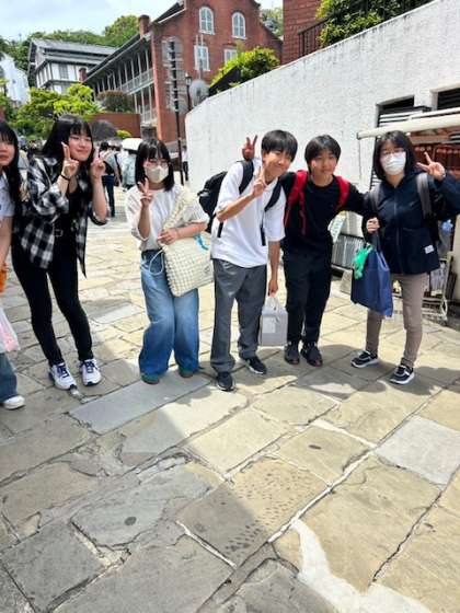 今朝の長崎県の天気予報では、曇りだったのですが、晴れやかなとてもいい天気での班別行動となりました。やっぱり9年生の日頃の行いが良いということでしょうね!天気も味方をしてくれました!