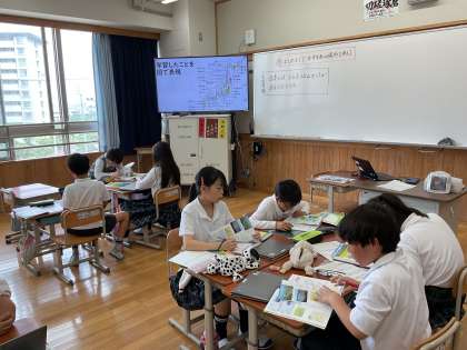 学習してきたことのまとめとして日本の土地のことをグループでまとめています。いろいろな知識を集結させています。