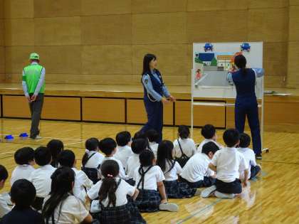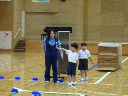 お話を聞いた後、体育館に作られたコースを実際に歩いてみました。